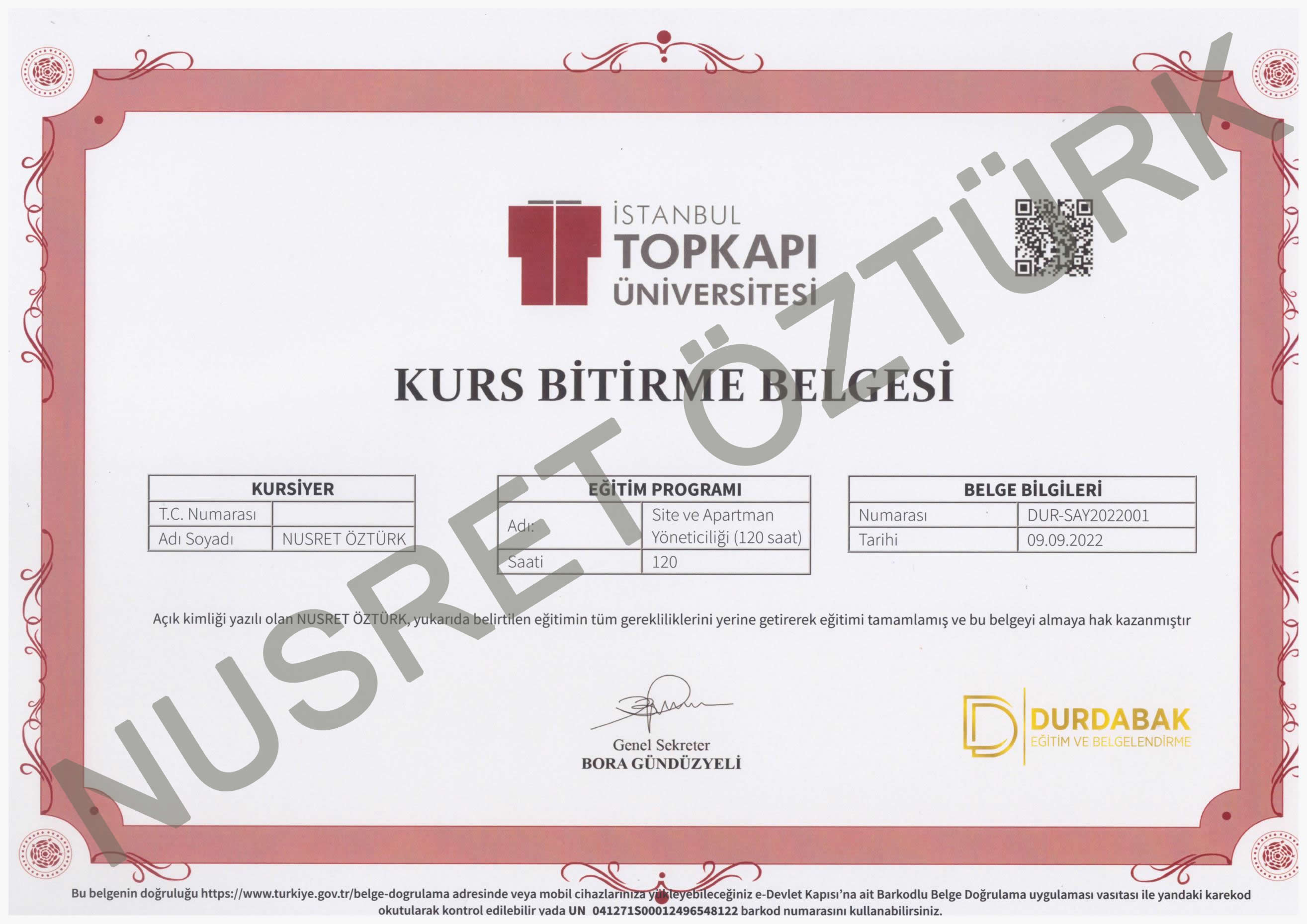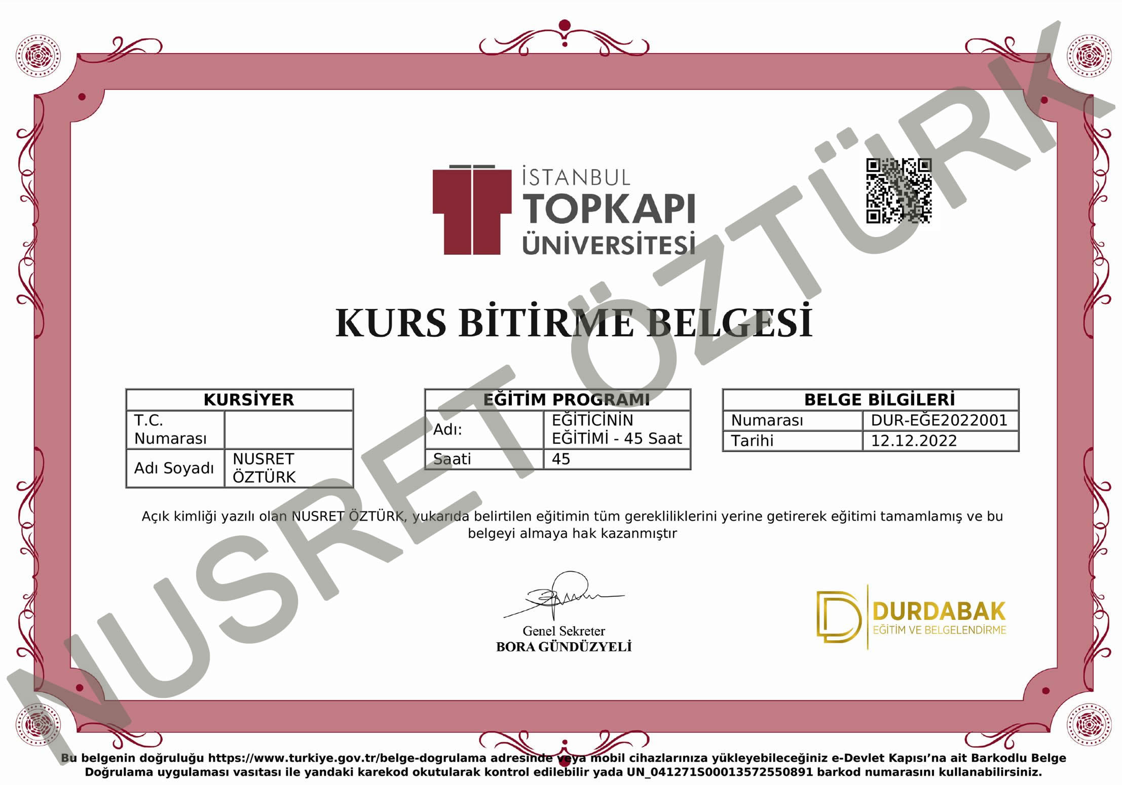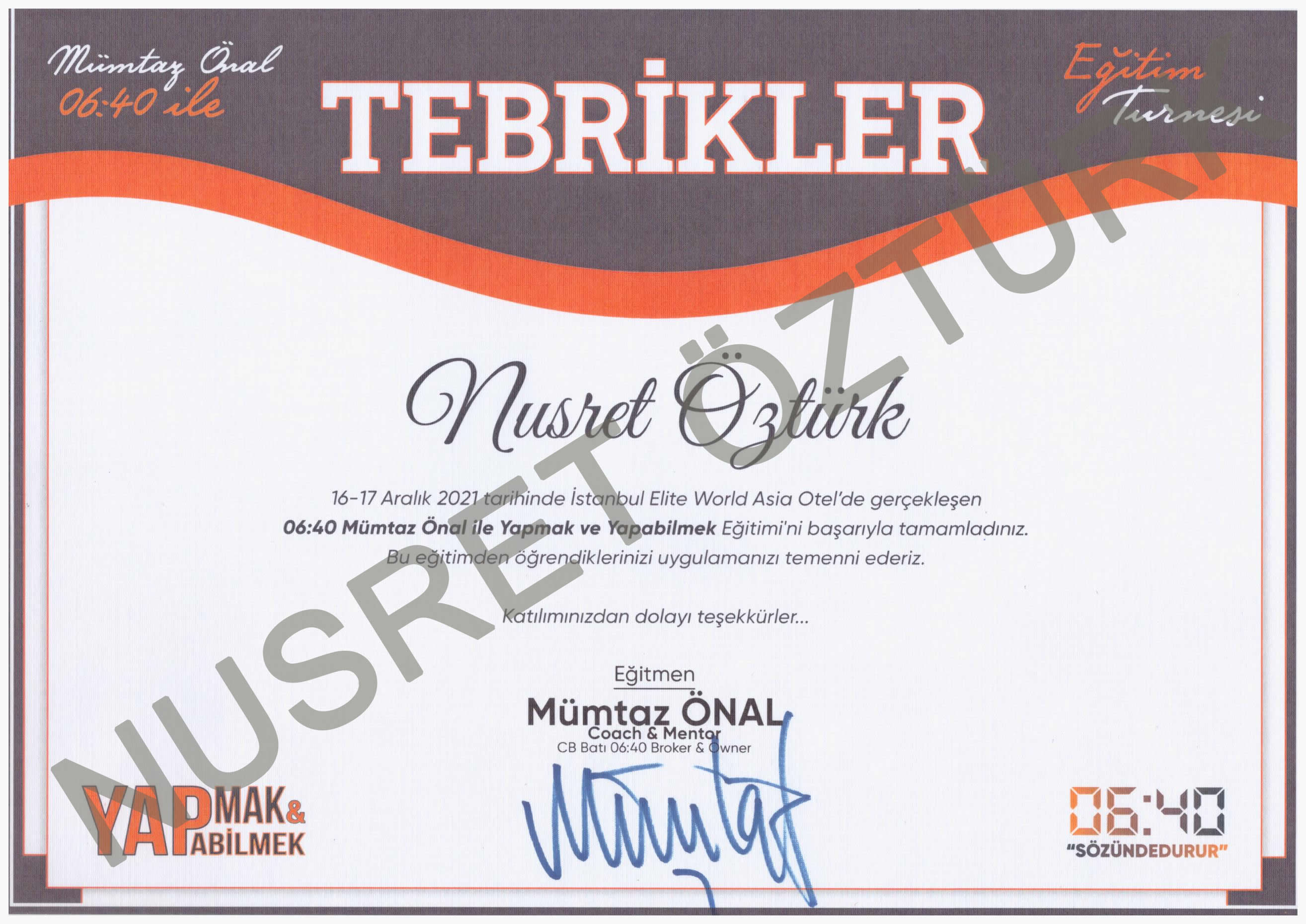 Nusret Öztürk Almış Olduğu Eğitim ve Sertifikalar