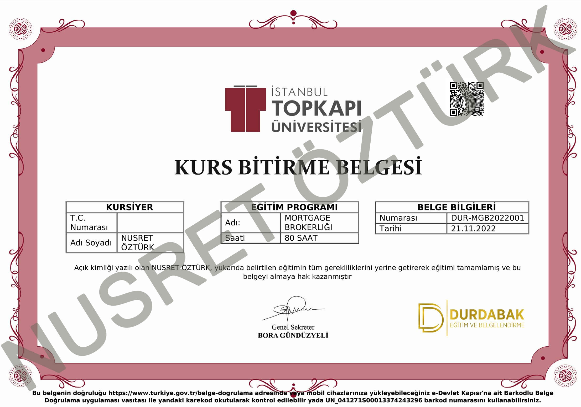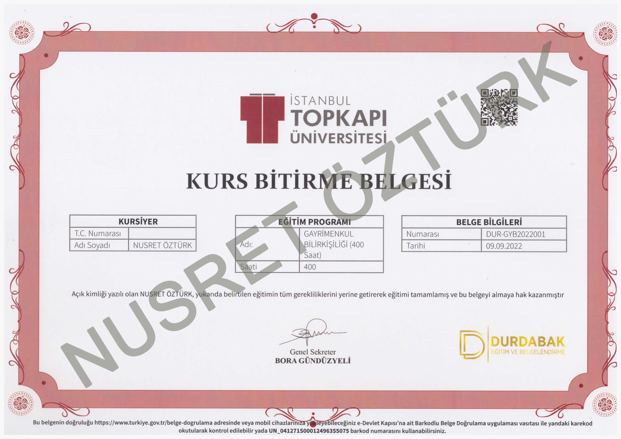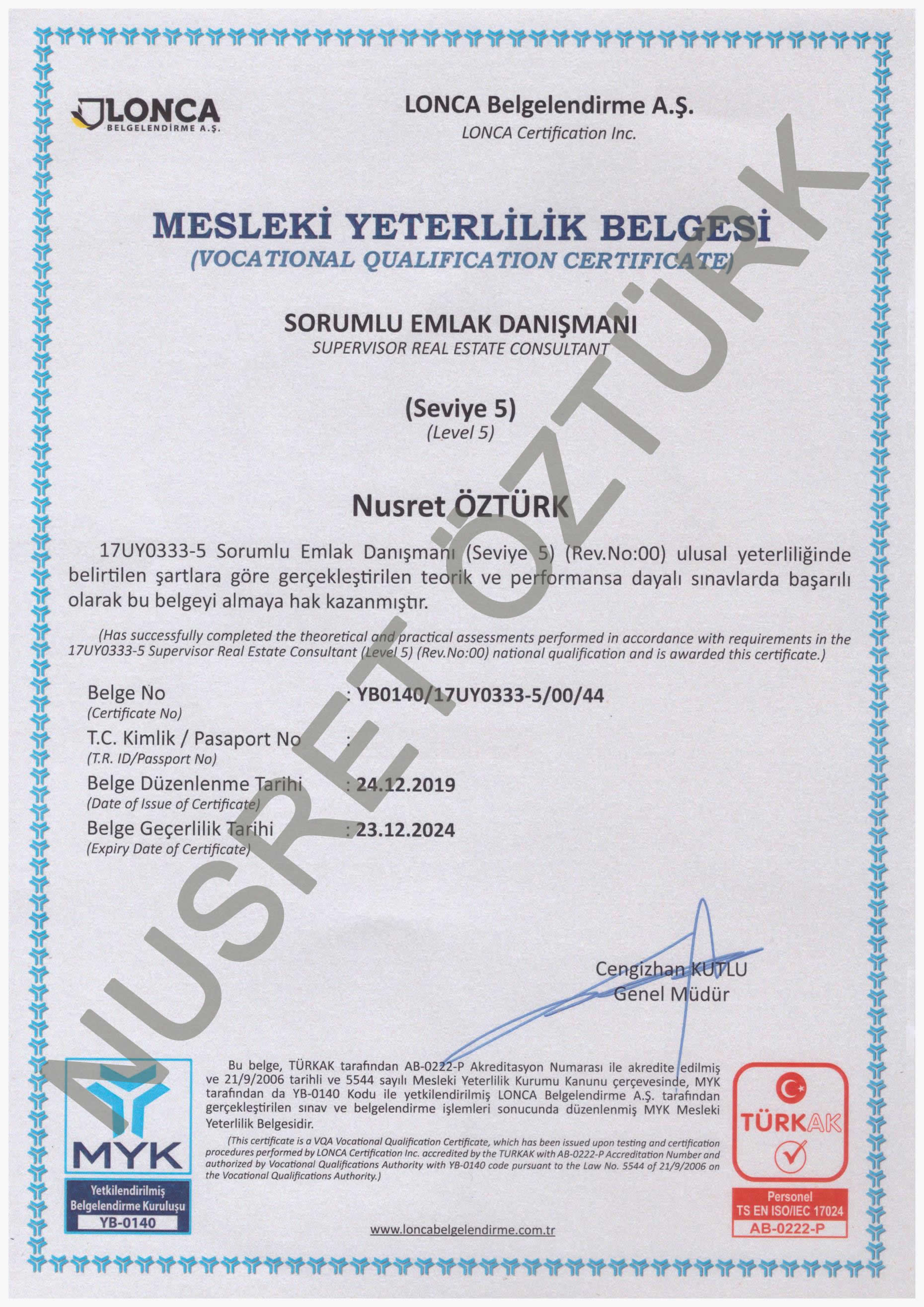 Nusret Öztürk Almış Olduğu Eğitim ve Sertifikalar